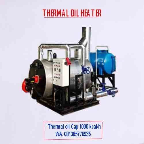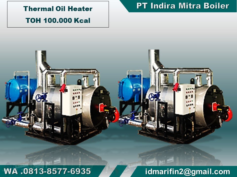Boiler oil atau bisa di sebut Thermal Oil Heater dengan kapasitas 100.000 Kkal /kcal per jam adalah jenis mesin transfer panas dengan mengunakan Thermal Oil Fluid (Oli mineral) sebagai media penghantar panas dan dapat bekerja sampai temperatur 320 °C dengan tekanan pompa yang di perlukan sekitar 5-8 bar tergantung jarak suplai (head) yang di butuhkan. Berbeda dengan mesin boiler steam yang mencapai tekanan 113 bar untuk pemakaian temperatur 320 °C, Thermal Oil Heater bekerja hanya pada tekanan pompa sirkulasinya saja sehingga lebih aman dan alat-alat yang membutuhkan pemanasan tidak perlu dirancang dengan konstruksi yang khusus.