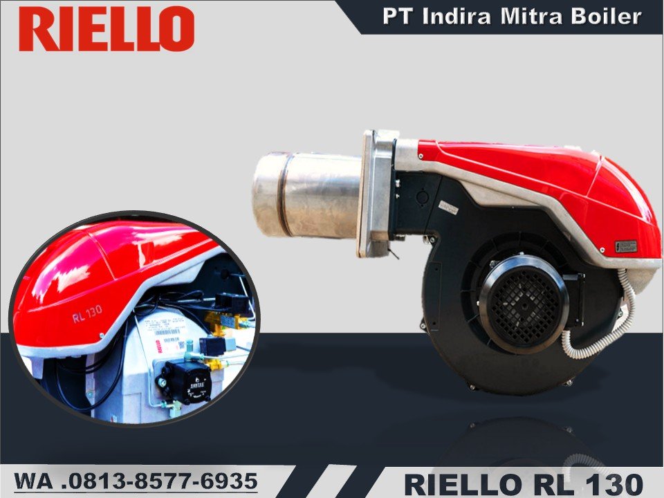 Seri burner Riello RL 130 adalah alat pembakaran Light oil atau campuran minyak ringan dan biodiesel yang mencakup rentang daya tembak dari 418 Mcal hingga 1325 Mcal/h, burner ini telah dirancang untuk digunakan pada boiler air panas atau uap, serta mesin pengering oven dan roatary drayer. Pengoperasiannya 2 nozzle “Two stage” dilengkapi dengan panel kontrol berbasis mikroprosesor, yang memberikan indikasi status burner dan penyebab kerusakan.