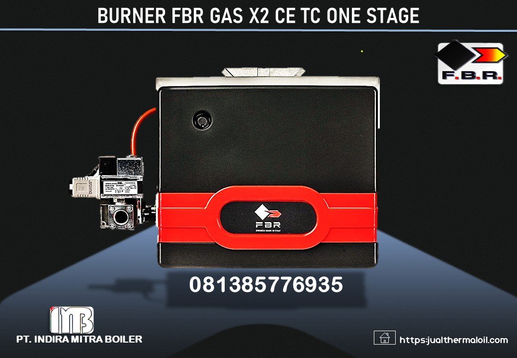 FBR Gas X2 CE TC adalah Burner berbahan bakar gas LPG atau natural gas yang menghasilkan kapasitas dari 40.7 – 93 kw pengoprasianya satu tahap (one stage), dengan rangka aluminium, penutup pelindung dengan pelat peredam kebisingan, kepala pembakaran dengan pengaturan efisiensi tinggi dan stabilitas nyala api tinggi. Desainnya memiliki dimensi keseluruhan yang ringkas dengan tata letak komponen yang dirancang secara rasional, memberikan kemudahan akses untuk pengaturan dan perawatan.