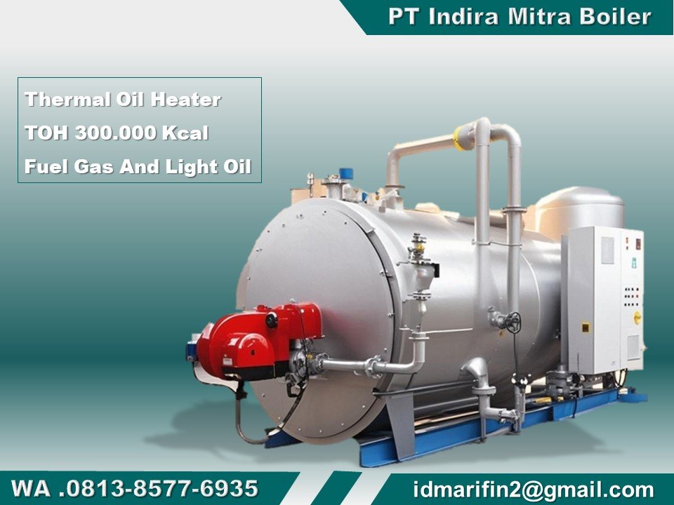 Boiler Oil atau thermal oil heater dengan kapasitas 300.000 Kcal per jam adalah alat yang secara otomatis memberikan panas dengan menggunakan sistem pemanas aliran paksa. Suhu yang dapat dicapai bisa sampai 350˚C atau bahkan lebih, bergantung pada jenis media transfer panas yang digunakan. Pemanas minyak ini bisa dirancang dalam tipe horizontal untuk memudahkan dalam pemeliharaan, atau dalam tipe vertikal untuk menghemat ruang dan efisiensi dengan menggunakan pembakar terintegrasi. Beberapa tipe pembakar dirancang agar dapat memanfaatkan panas dari pembakaran yang menggunakan bahan bakar gas atau minyak cair sesuai dengan kebutuhan pengguna.